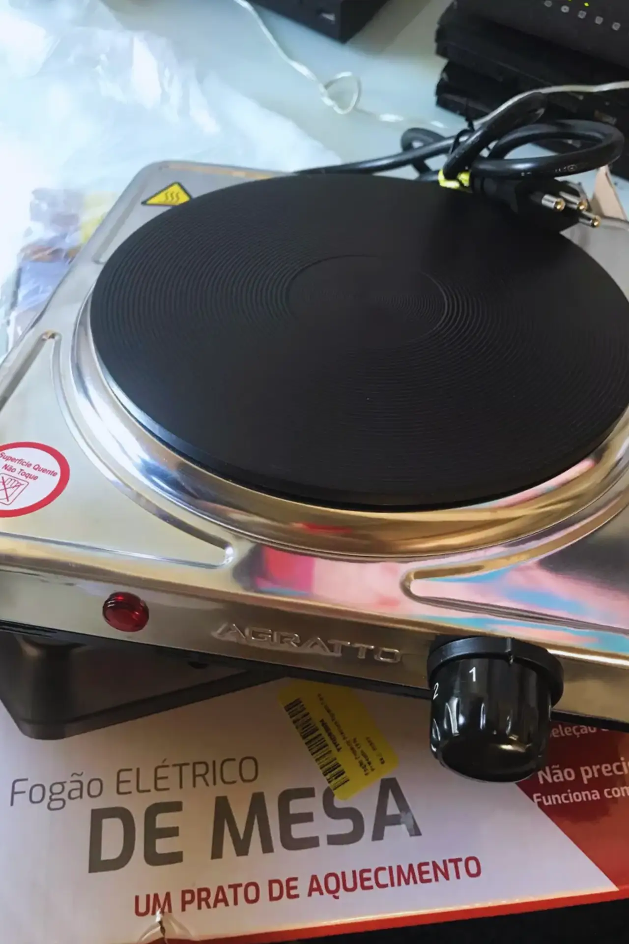 Ele funciona com alimentação elétrica e não exige gás, o que o torna perfeito para pequenos espaços, cozinhas extras, uso em áreas externas ou até mesmo para levar em viagens. Basta ligar na tomada, ajustar a temperatura com o seletor giratório e pronto. O aquecimento acontece em uma placa de ferro fundido, o que garante distribuição uniforme do calor.